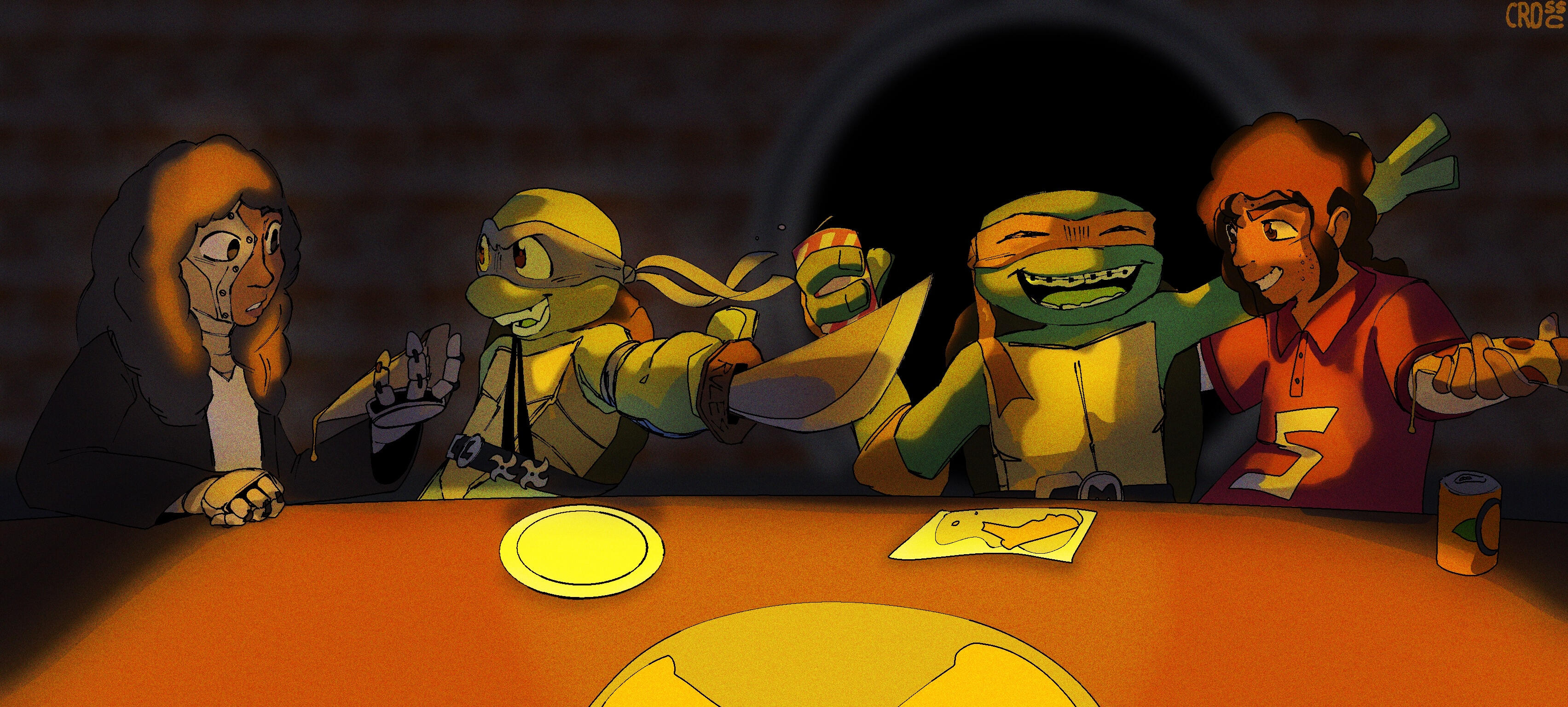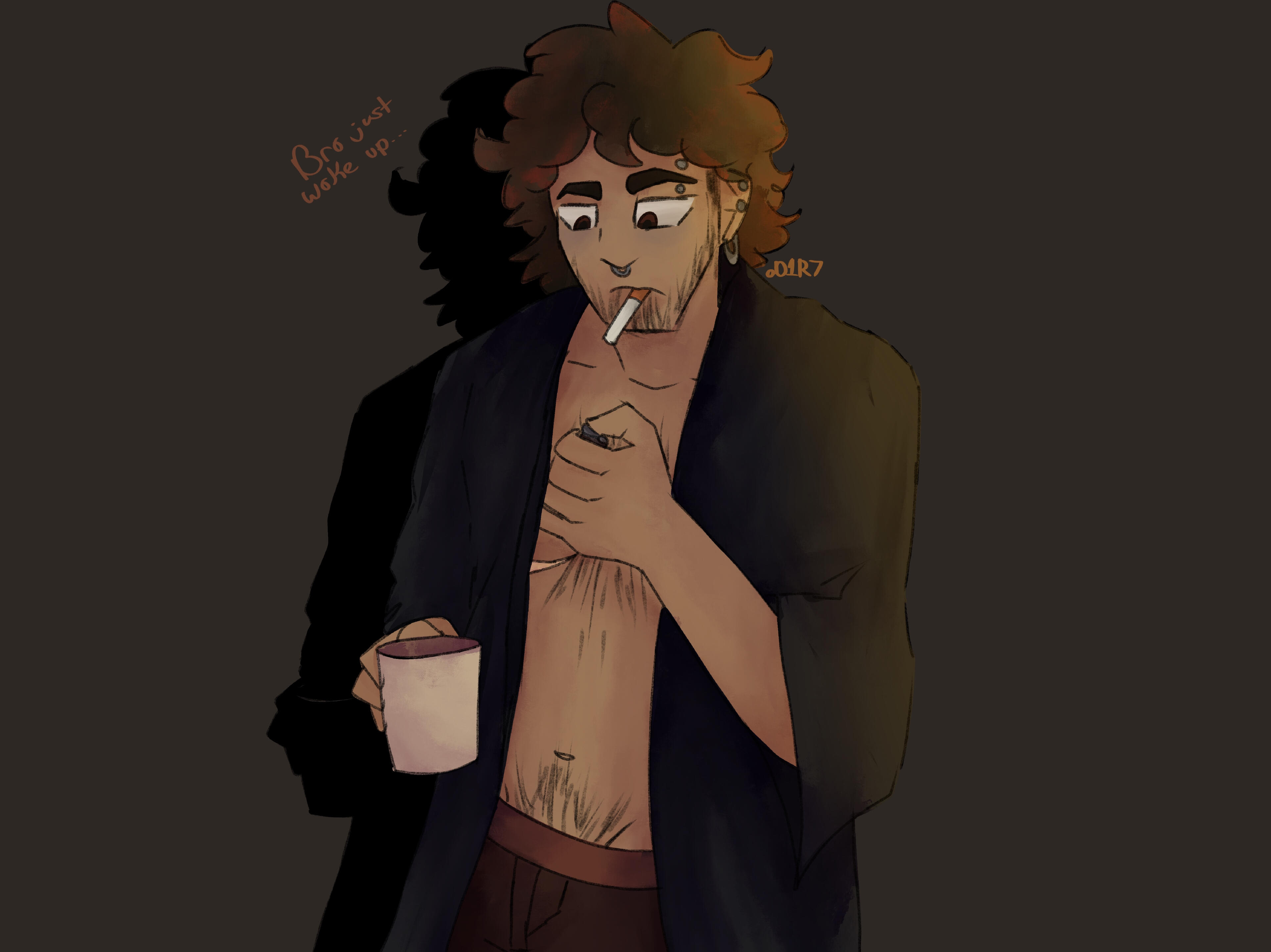 Possibly drawing Jack, Dexter, and Andrew together watching a movie or getting breakfast together.