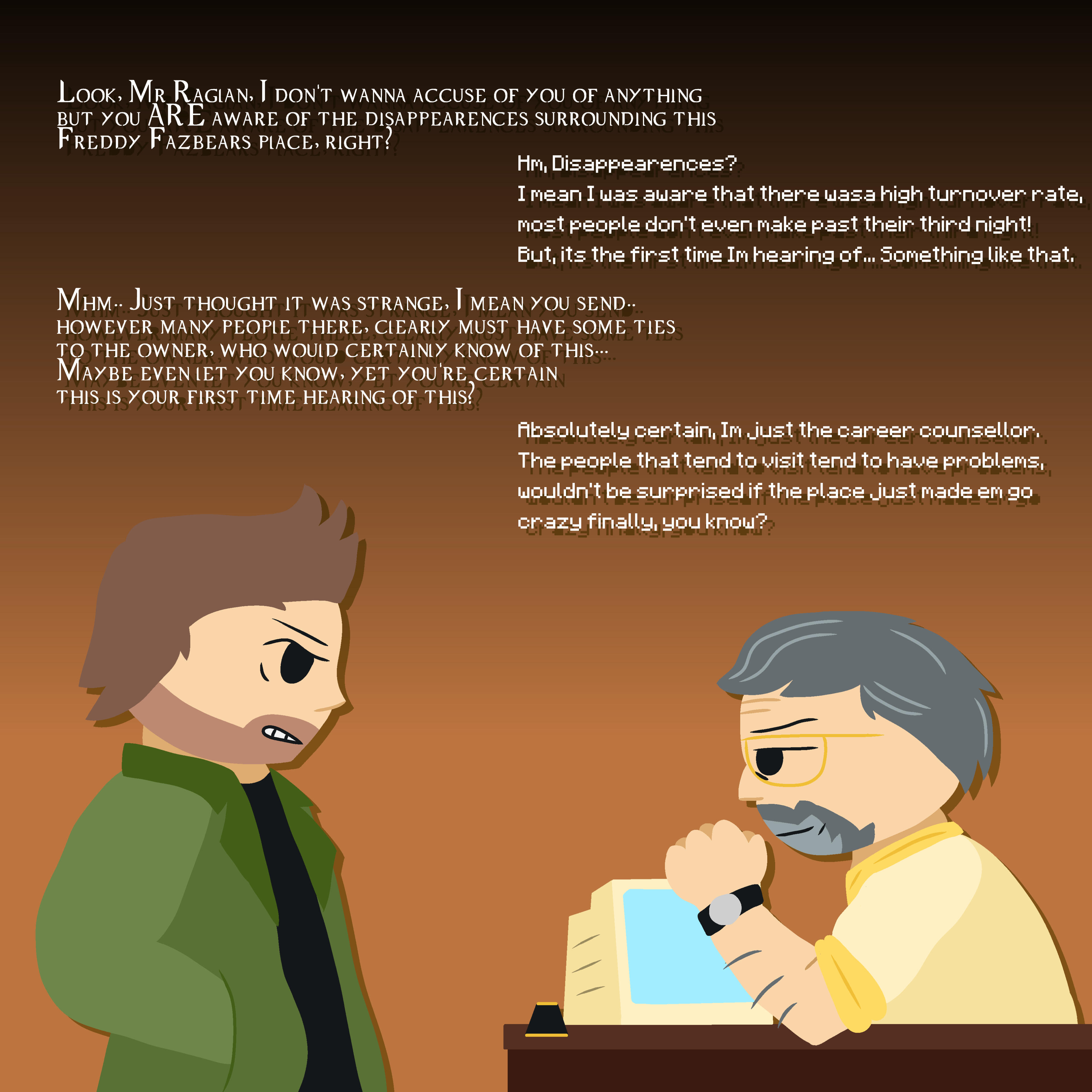 If you could draw my main oc Scott paired with Micheal Afton, Dean Winchester, or Bucky barnes, i will be immensely happy!! (mike is def a preference) (anything fnaf related, too)