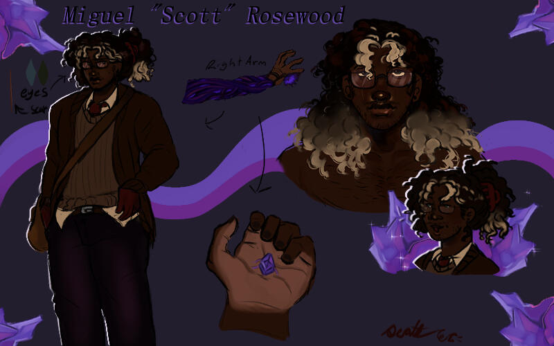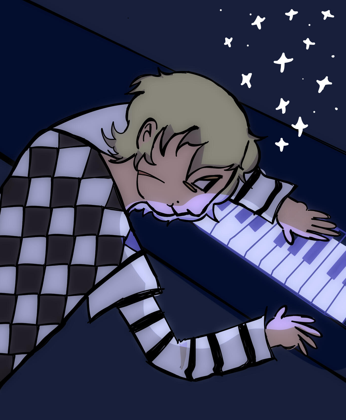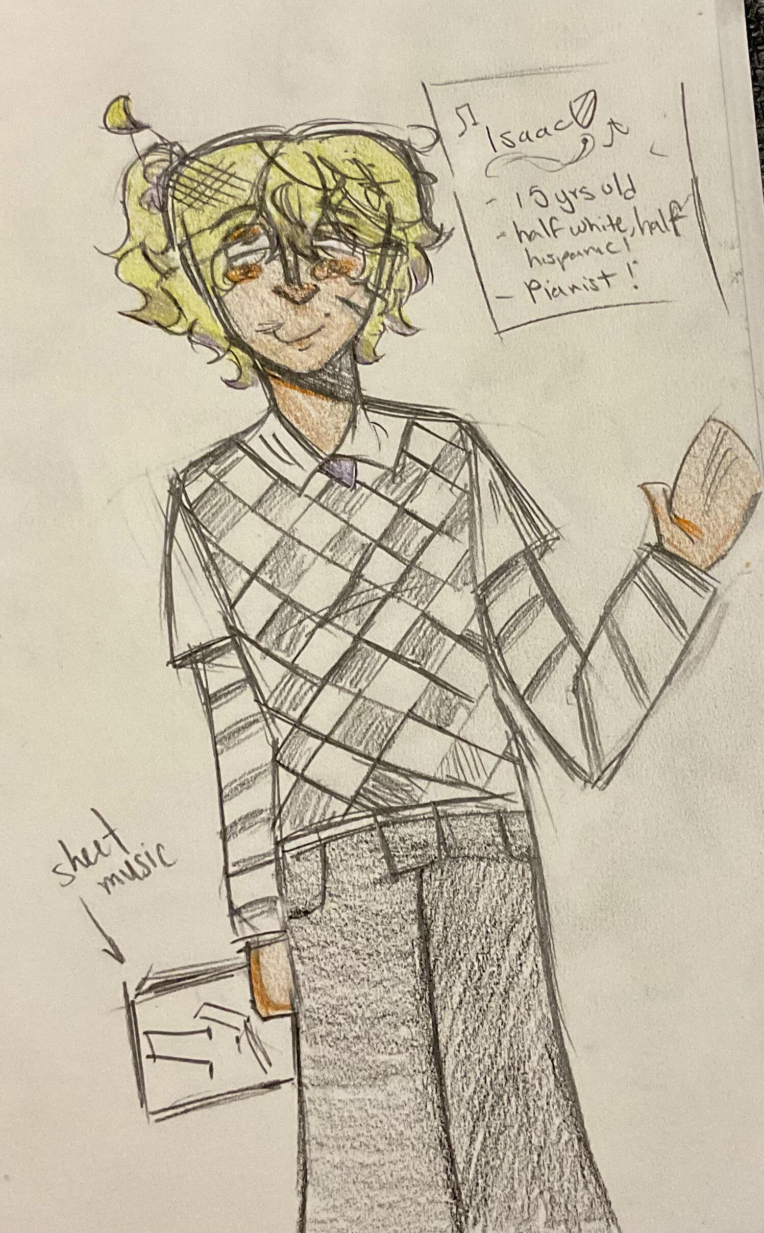 isaac is a character from my universe who struggles mentally but eventually finds the right people in his life which help him recover from his deep traumas :) He’s a very closed , quiet person but once you get close to him he’s a sweetheart !! :3 He starts a school band alongside his sister Violet , he plays the piano and is very passionate about it !!