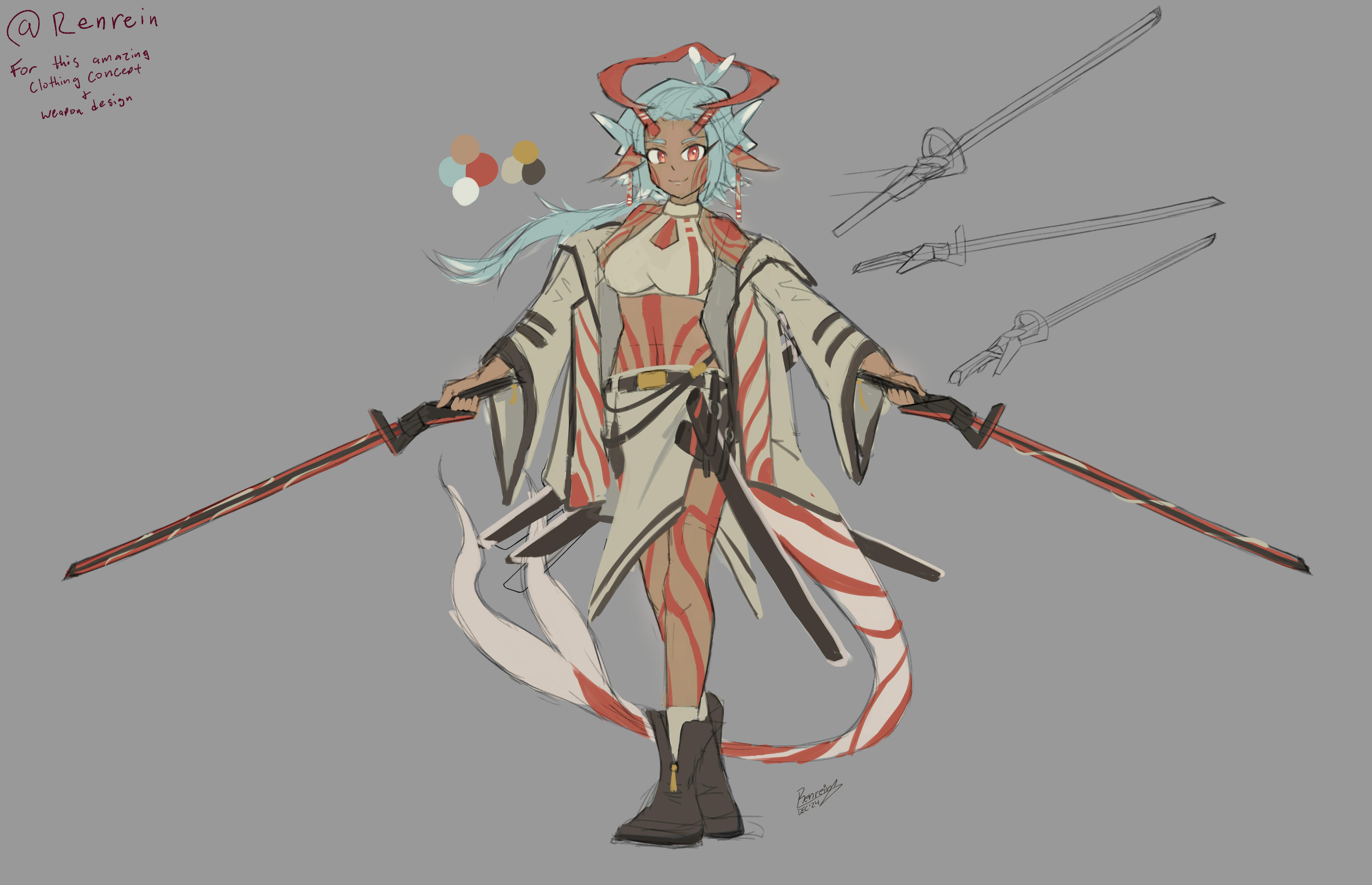 My OC Niru in unique clothing, any style you think would look cool! Also experimental colors